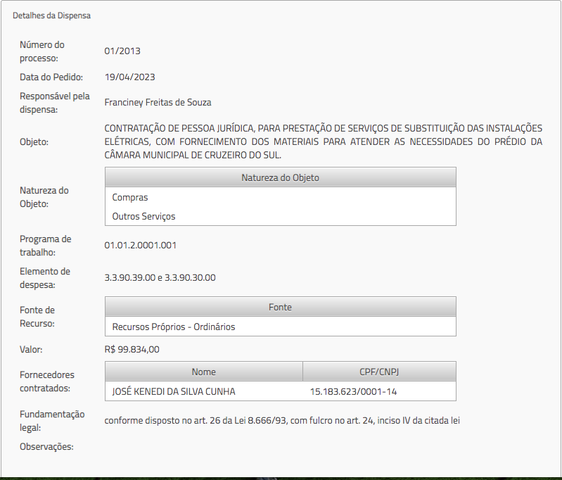 DISPENSA DE LICITAÇÃO Nº 001/2013